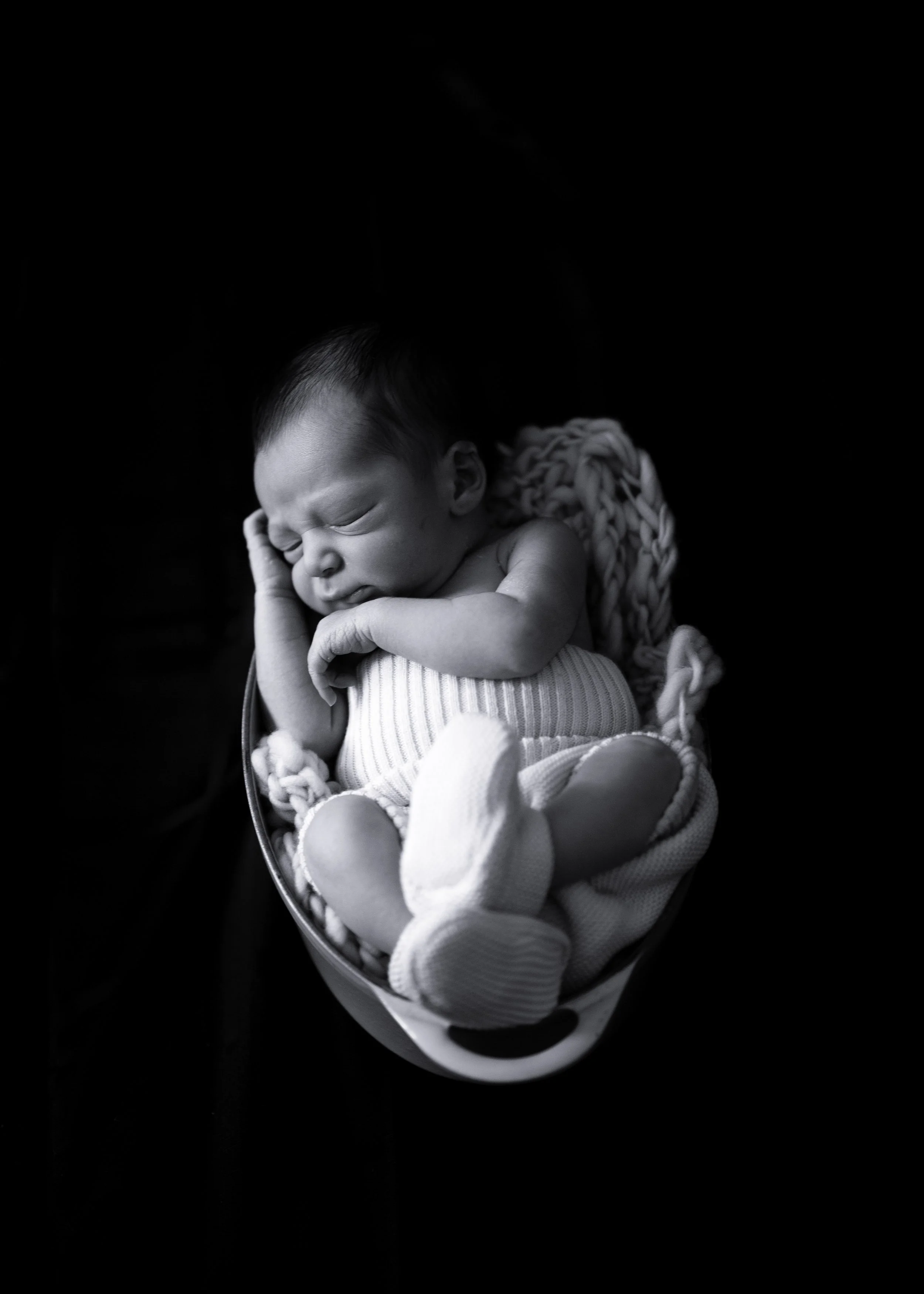Let’s be real— newborn photography can be very intimidating. Newborns are delicate and vulnerable. During my pre-shoot research, someone even referred to newborns as “malleable” which is not only terrifying but also nerve-wracking. Not being a mother myself and having very limited experience working with tiny babies, I approached this project with an overly cautious technique. Do your research on poses and always be gentle. If a pose isn’t working, don’t push it. Move on to a new one. Switch things up. Also have the parents or caregiver present, especially if you are new to newborn photography! No one knows their baby better than they do.